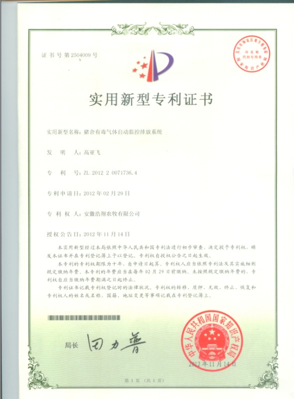 豬舍有毒氣體自動(dòng)監(jiān)控排放系統(tǒng)專利